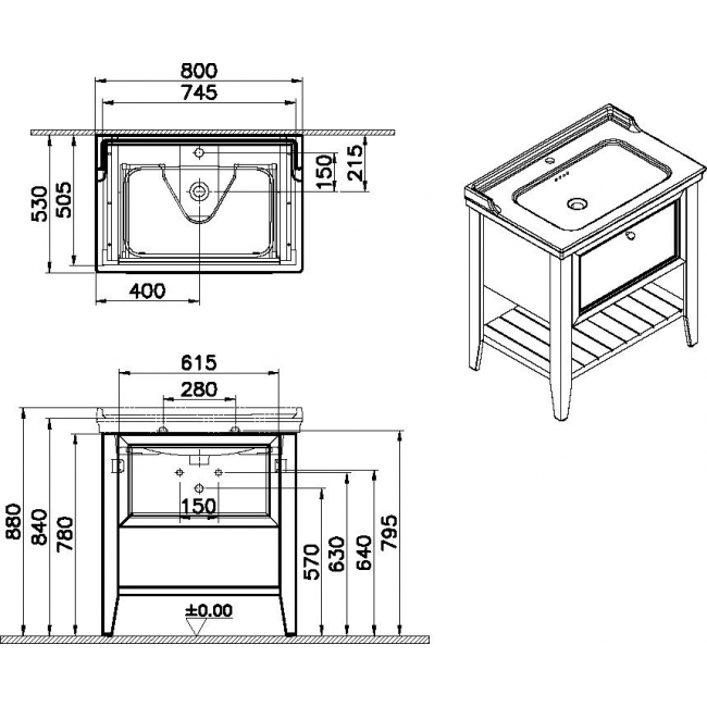 Комплект мебели VitrA Valarte 80 ретро зеленый (65815+65828) купить с доставкой. 100% Оригинал. Гарантия!