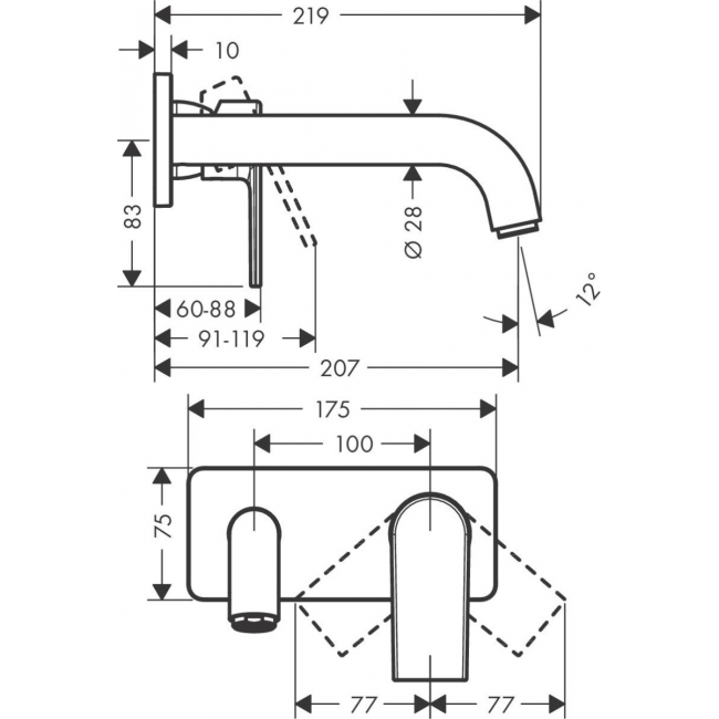 Комплект смеситель для раковины настенный излив и скрытая часть 204 см Hansgrohe Vernis Shape 71578000S хром купить с доставкой. 100% Оригинал. Гарантия!