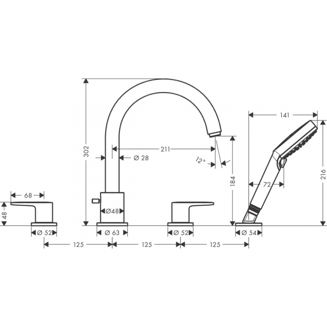 Комплект смеситель на край ванны и скрытая часть Hansgrohe Vernis Blend 71456000S хром купить с доставкой. 100% Оригинал. Гарантия!