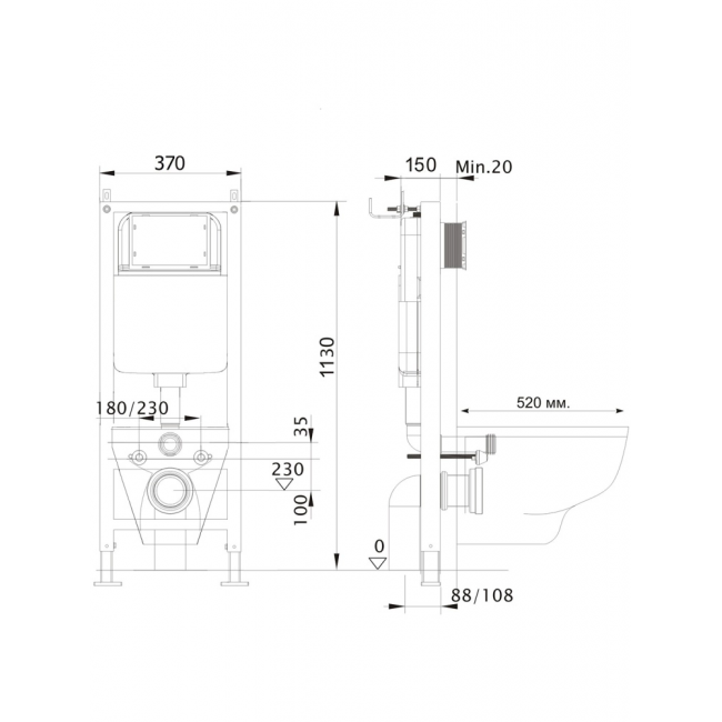 - Оцинкованные ножки с простой и бесступенчатой регулировкой до 20 см позволяют установить сантехнику на комфортной высоте