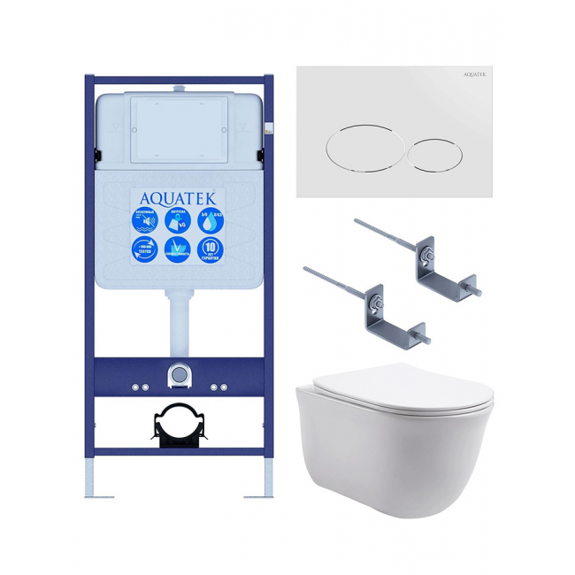 Комплект унитаз с инсталляцией и сиденьем микролифт SET AQUATEK КЛАССИК-071 4в1 безободковый купить с доставкой. 100% Оригинал. Гарантия!