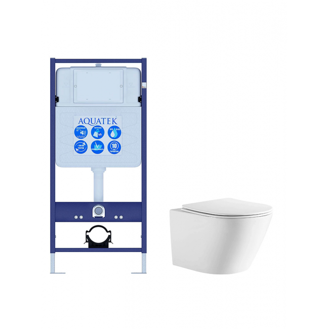 Комплект унитаз с инсталляцией и сиденьем SET AQUATEK ЛИБЕРТИ безободковый купить с доставкой. 100% Оригинал. Гарантия!