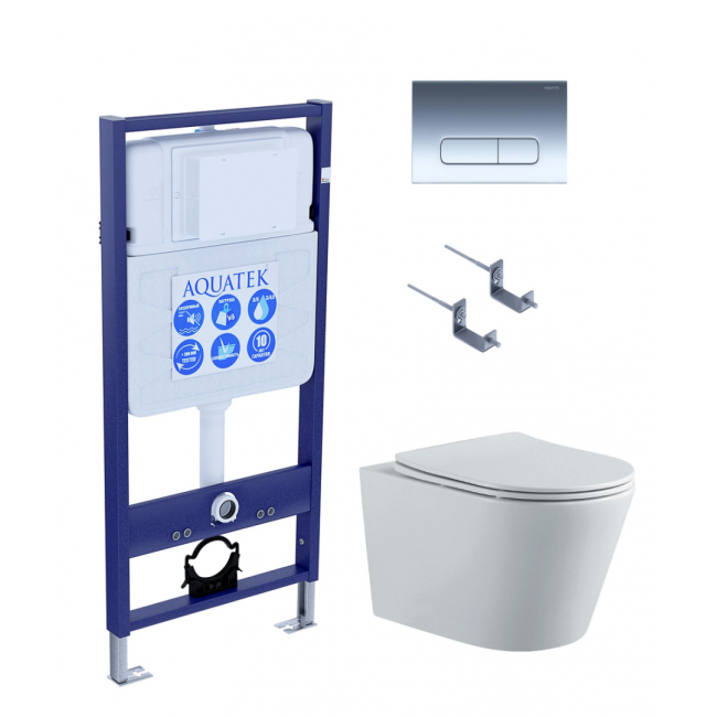 Комплект унитаз с инсталляцией, кнопкой и сиденьем Aquatek Вега SET AQUATEK ВЕГА-1905-016 безободковый купить с доставкой. 100% Оригинал. Гарантия!