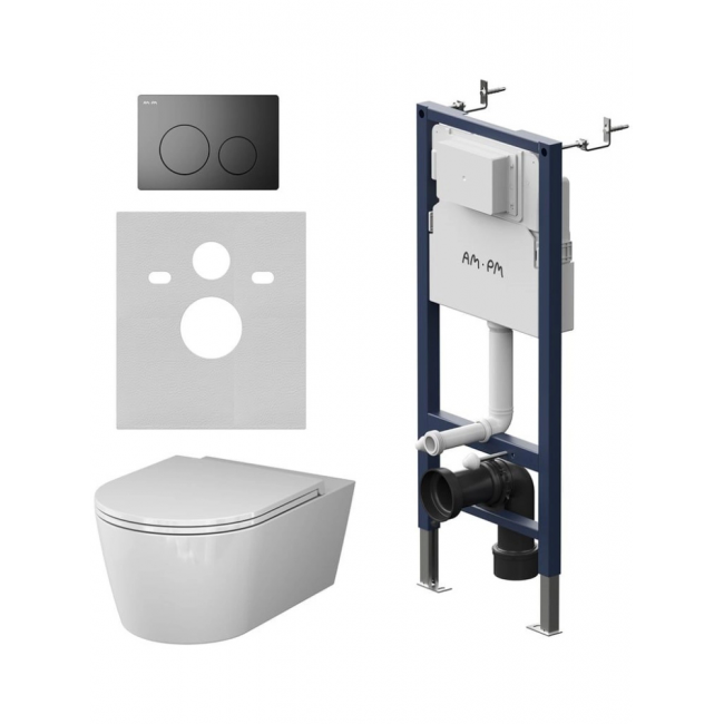 Комплект унитаз с инсталляцией, кнопкой и сиденьем микролифт AM.PM Func IS90138.8F1701 безободковый купить с доставкой. 100% Оригинал. Гарантия!