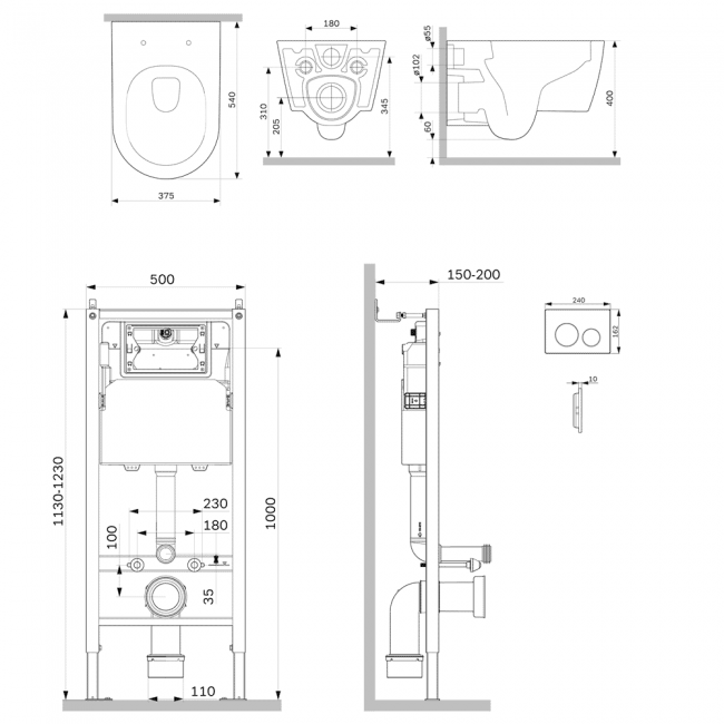 Полностью готовый к установке комплект: система инсталляции с клавишей подвесной унитаз с сиденьем включающий все необходимые крепления патрубки звукоизолирующую прокладку. Экономия пространства благодаря узкому бачку – 120 мм глубиной. Заливной клапан с низким уровнем шума - Класс II согласно европейского стандарта EN 14124.