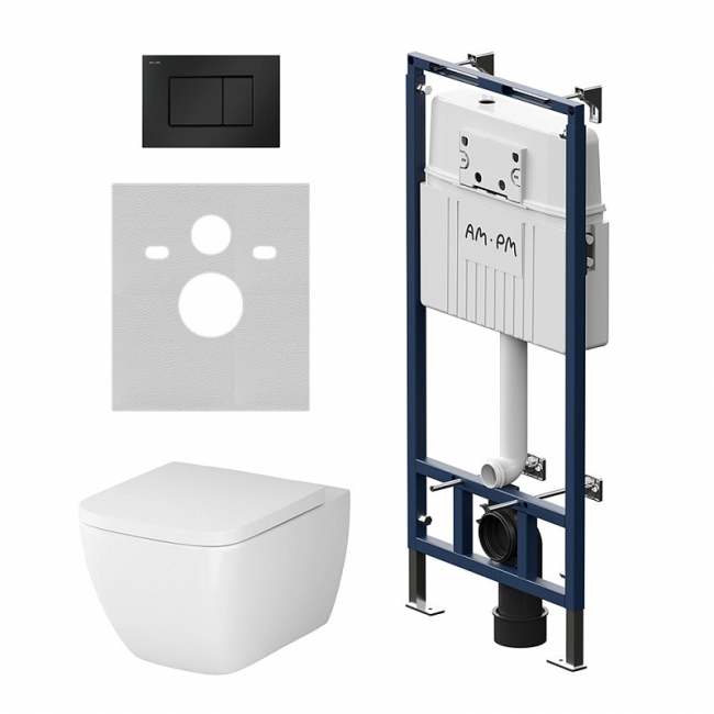 Комплект унитаз с инсталляцией, кнопкой и сиденьем микролифт AM.PM Gem IS100238.901701 безободковый купить с доставкой. 100% Оригинал. Гарантия!