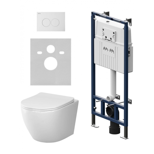 Комплект унитаз с инсталляцией, кнопкой и сиденьем микролифт AM.PM Like IS100101.801900 безободковый купить с доставкой. 100% Оригинал. Гарантия!