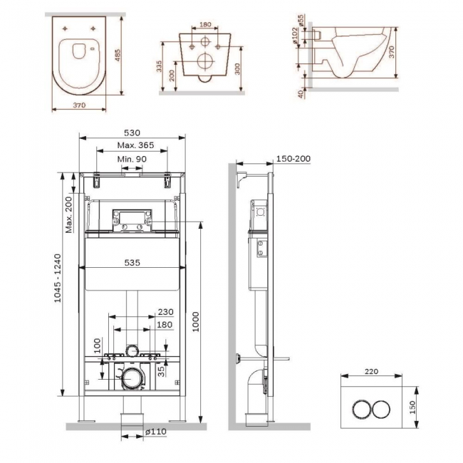 Полностью готовый к установке комплект: система инсталляции с клавишей подвесной унитаз с сиденьем включающий все необходимые крепления патрубки звукоизолирующую прокладку. Экономия пространства благодаря узкому бачку - 120 мм глубиной. Заливной клапан с низким уровнем шума - Класс II согласно европейского стандарта EN 14124.