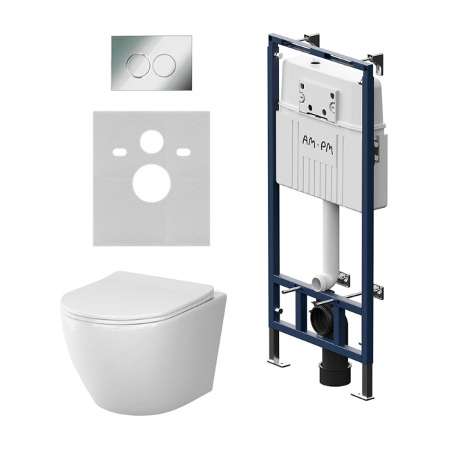 Комплект унитаз с инсталляцией, кнопкой и сиденьем микролифт AM.PM Like IS100151.801900 безободковый купить с доставкой. 100% Оригинал. Гарантия!