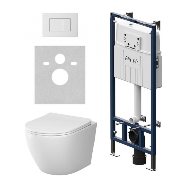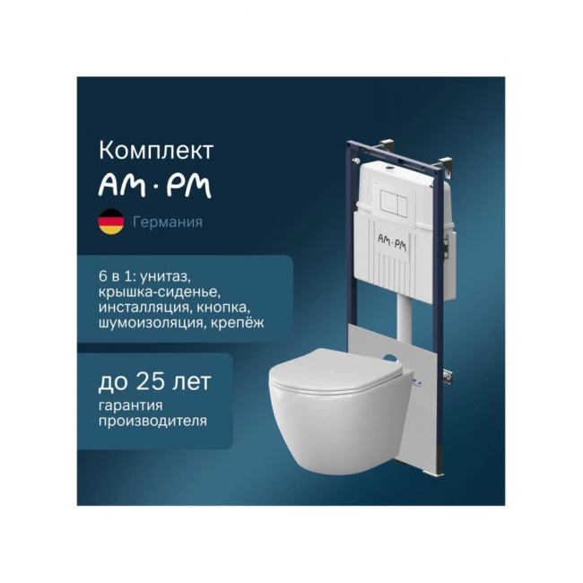 Комплект унитаз с инсталляцией, кнопкой и сиденьем микролифт AM.PM Like IS100201.801900 безободковый купить с доставкой. 100% Оригинал. Гарантия!