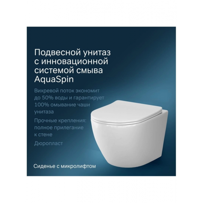 Подвесной унитаз Like c технологией смыва AquaSpin. Новая инновационная система использует вихревой поток воды для самого эффективного очищения чаши унитаза. Эта технология обеспечивает более качественное омывание чаши, чем традиционные системы смыва, и при этом экономит воду до 50 %.