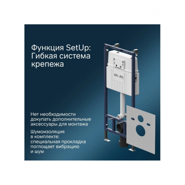 Функция SetUp: Гибкая система крепежа – универсальность и эффективность установочного процесса. Гибко обходит вертикальные и горизонтальные трубы. Высокая прочность и износостойкость/ Выдерживает нагрузку до 400 кг. Подходит для унитазов любых размеров. Армированный шланг подачи воды, двойная прокладка слива и подачи воды. В комплекте механическая двухрежимная клавиша из ABS-пластика в цвете глянцевый белый. Подключение воды сзади сверху.
