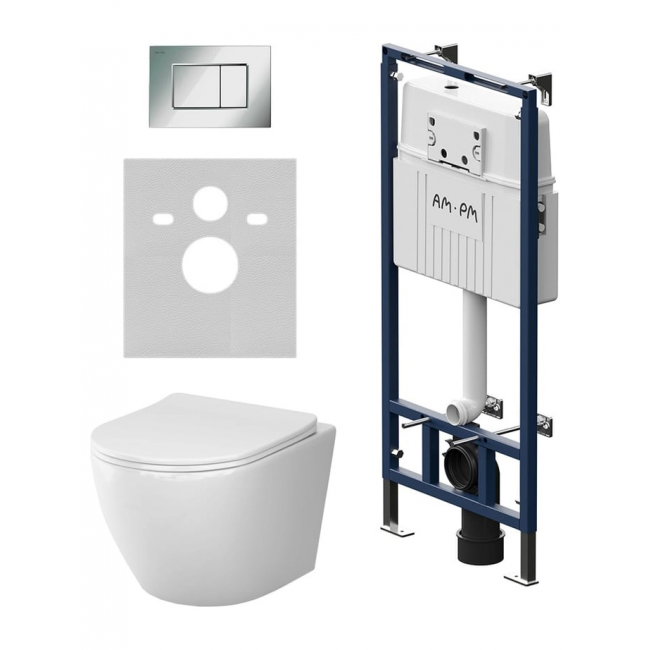 Комплект унитаз с инсталляцией, кнопкой и сиденьем микролифт AM.PM Like IS100251.801900 безободковый купить с доставкой. 100% Оригинал. Гарантия!