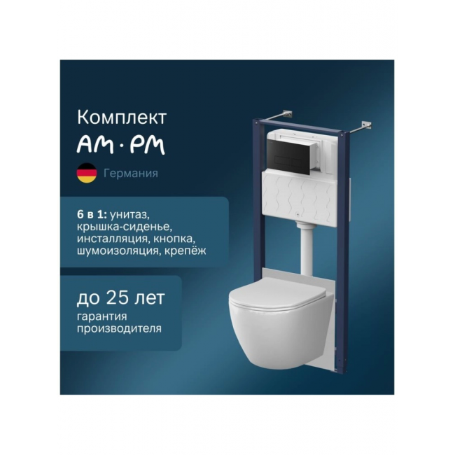 Комплект унитаз с инсталляцией, кнопкой и сиденьем микролифт AM.PM Like IS47038.801900 безободковый купить с доставкой. 100% Оригинал. Гарантия!