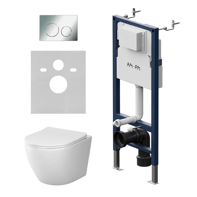Комплект унитаз с инсталляцией, кнопкой и сиденьем микролифт AM.PM Like IS90151.801900 безободковый купить с доставкой. 100% Оригинал. Гарантия!