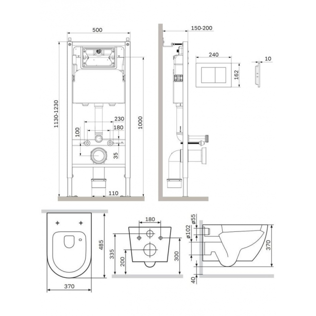 Полностью готовый к установке комплект: система инсталляции с клавишей, подвесной унитаз с сиденьем, включающий все необходимые крепления, патрубки, звукоизолирующую прокладку. Экономия пространства благодаря узкому бачку – 120 мм глубиной. Заливной клапан с низким уровнем шума - Класс II, согласно европейского стандарта EN 14124.