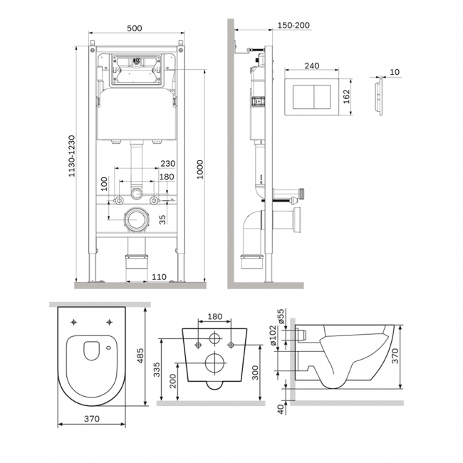 Полностью готовый к установке комплект: система инсталляции с клавишей подвесной унитаз с сиденьем включающий все необходимые крепления патрубки звукоизолирующую прокладку. Экономия пространства благодаря узкому бачку – 120 мм глубиной. Заливной клапан с низким уровнем шума - Класс II согласно европейского стандарта EN 14124.