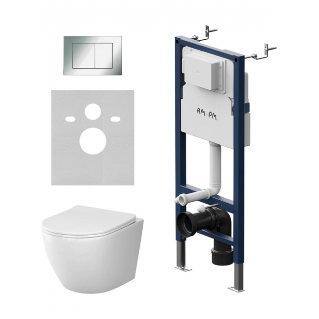Комплект унитаз с инсталляцией, кнопкой и сиденьем микролифт AM.PM Like IS90251.801900 безободковый купить с доставкой. 100% Оригинал. Гарантия!
