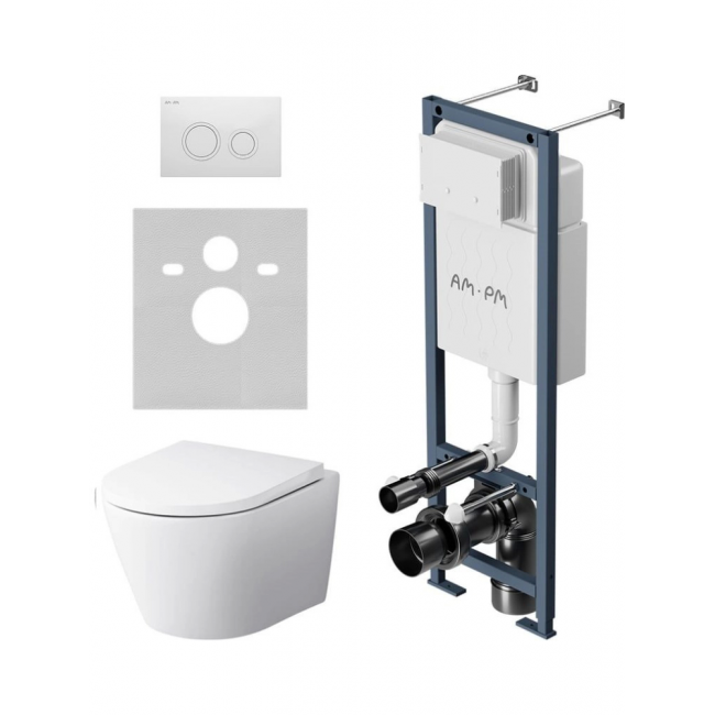 Комплект унитаз с инсталляцией, кнопкой и сиденьем микролифт AM.PM Sense IS110101.741701 безободковый купить с доставкой. 100% Оригинал. Гарантия!