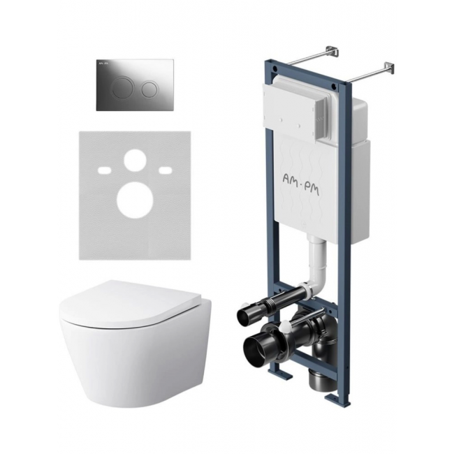 Комплект унитаз с инсталляцией, кнопкой и сиденьем микролифт AM.PM Sense IS110151.741701 безободковый купить с доставкой. 100% Оригинал. Гарантия!