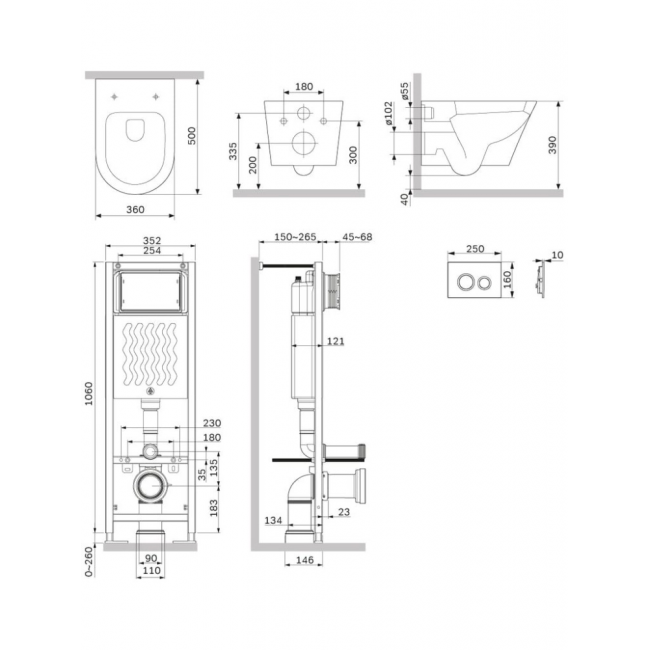 Максимально полный комплект поставки, включающий все необходимые крепления, патрубки, звукоизолирующую прокладку. Экономия пространства благодаря узкой раме – 352 мм шириной. Подходит даже для самых малогабаритных ванных комнат. Заливной клапан с низким уровнем шума - Класс II, согласно европейского стандарта EN 14124.