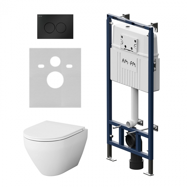Комплект унитаз с инсталляцией, кнопкой и сиденьем микролифт AM.PM Spirit V2.0 IS100138.701700 безободковый купить с доставкой. 100% Оригинал. Гарантия!