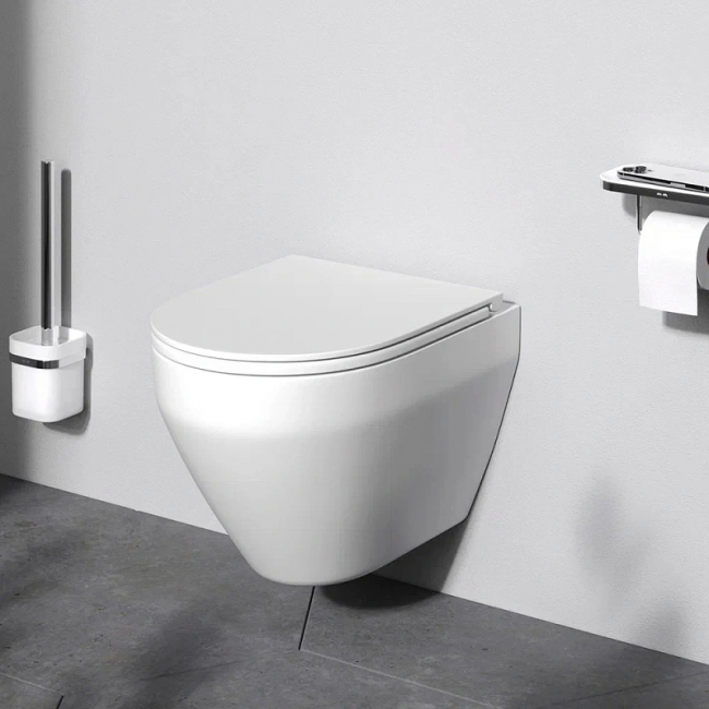 Полностью готовый к установке комплект: система инсталляции с клавишей подвесной унитаз сиденьем.