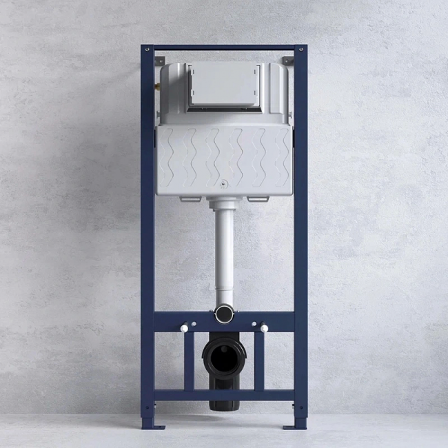 Не разборная рама из стального профиля выдерживает нагрузку до 400 кг. Полностью изолированный бачок с качественной двухрежимной смывной арматурой - комфортное использование благодаря низкому уровню шума - менее 20 Дб. Укомплектован сенсорной клавишей в черном цвете. В комплекте все необходимые патрубки и крепления а также прокладка между унитазом и стеной - звукоизоляция.