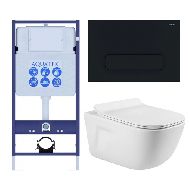 Комплект унитаз с инсталляцией, кнопкой и сиденьем микролифт Aquatek Дива SET AQUATEK ДИВА-017 4в1 безободковый купить с доставкой. 100% Оригинал. Гарантия!