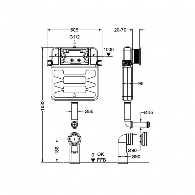 - Цельновыдувной смывной бачок с кожухом, защищающим от образования конденсата