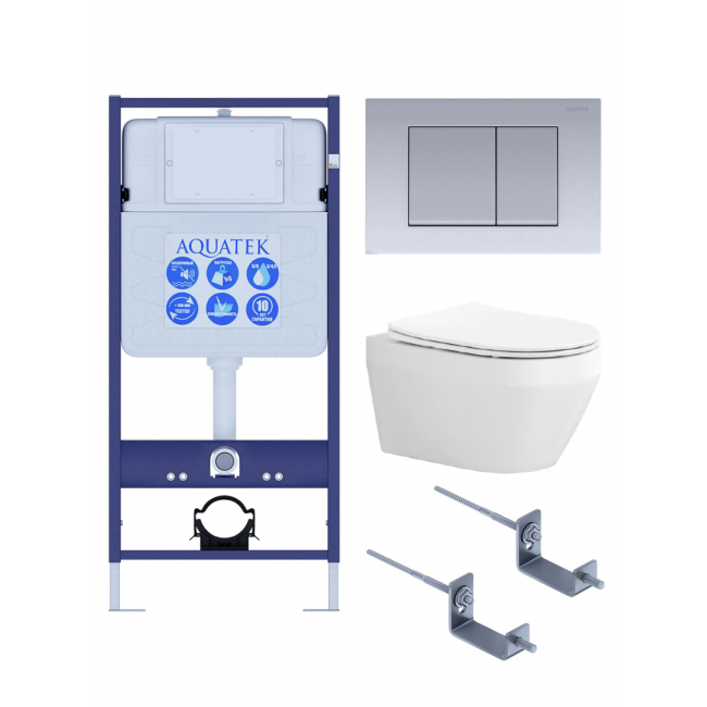 Комплект унитаз с инсталляцией, кнопкой и сиденьем микролифт Aquatek Лея SET AQUATEK ЛЕЯ cm-011 4в1 безободковый купить с доставкой. 100% Оригинал. Гарантия!