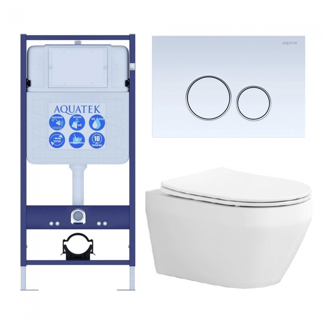 Комплект унитаз с инсталляцией, кнопкой и сиденьем микролифт Aquatek Лея SET AQUATEK ЛЕЯ cm-015 4в1 безободковый купить с доставкой. 100% Оригинал. Гарантия!