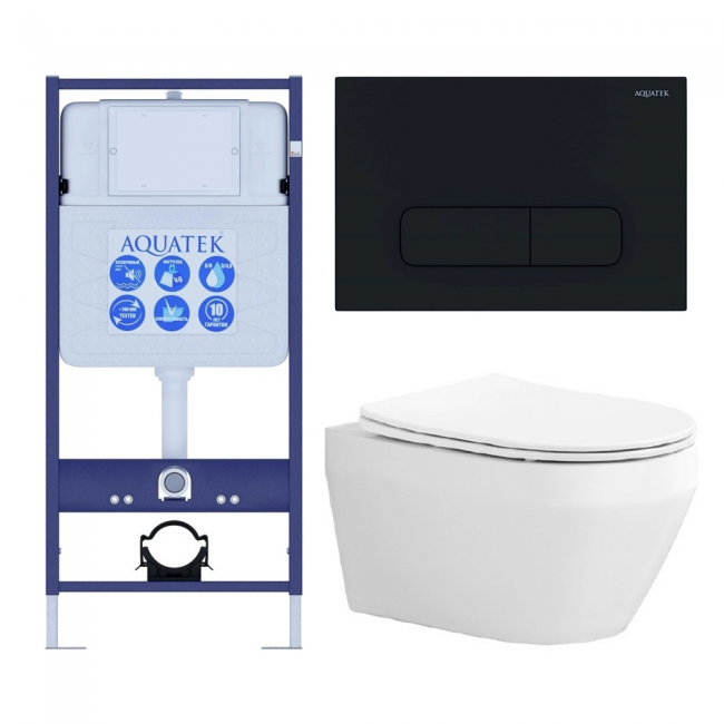 Комплект унитаз с инсталляцией, кнопкой и сиденьем микролифт Aquatek Лея SET AQUATEK ЛЕЯ cm-017 4в1 безободковый купить с доставкой. 100% Оригинал. Гарантия!