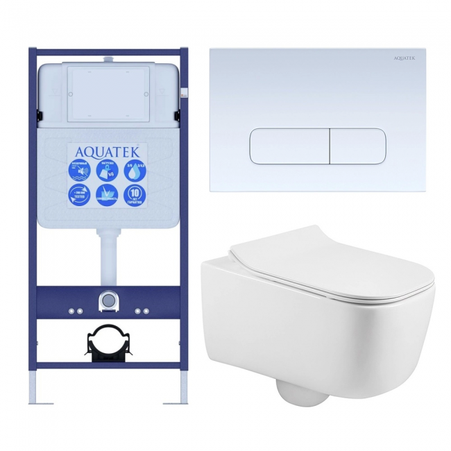 Комплект унитаз с инсталляцией, кнопкой и сиденьем микролифт Aquatek Лугано SET AQUATEK ЛУГАНО-013 4в1 безободковый купить с доставкой. 100% Оригинал. Гарантия!