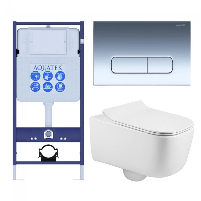 Комплект унитаз с инсталляцией, кнопкой и сиденьем микролифт Aquatek Лугано SET AQUATEK ЛУГАНО-016 4в1 безободковый купить с доставкой. 100% Оригинал. Гарантия!