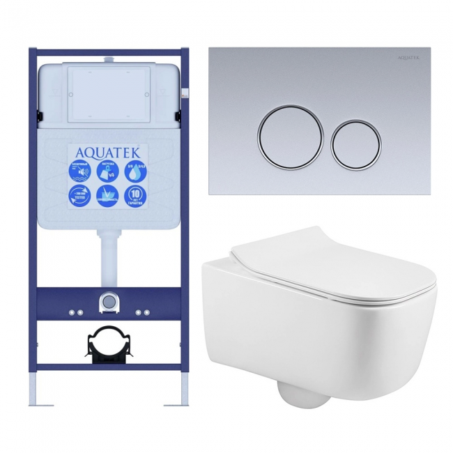 Комплект унитаз с инсталляцией, кнопкой и сиденьем микролифт Aquatek Лугано SET AQUATEK ЛУГАНО-019 4в1 безободковый купить с доставкой. 100% Оригинал. Гарантия!