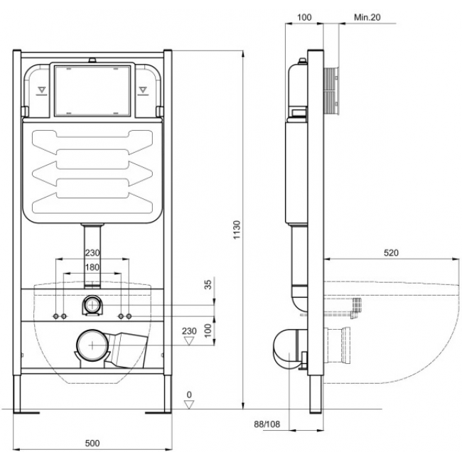 - Инсталляция совместима со смывными клавишами Geberit серии Sigma для механической системы смыва