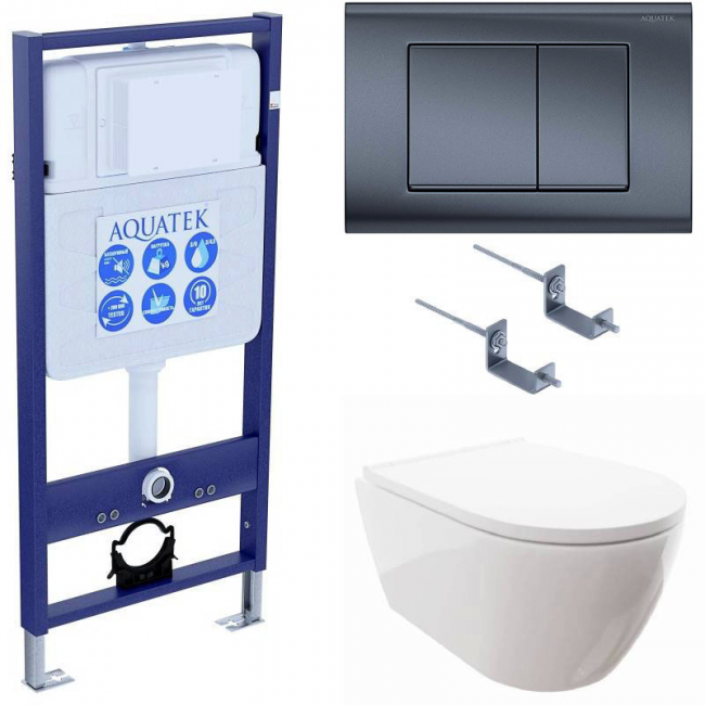 Комплект унитаз с инсталляцией, кнопкой и сиденьем микролифт Aquatek Поларис SET AQUATEK ПОЛАРИС-033 4в1 купить с доставкой. 100% Оригинал. Гарантия!