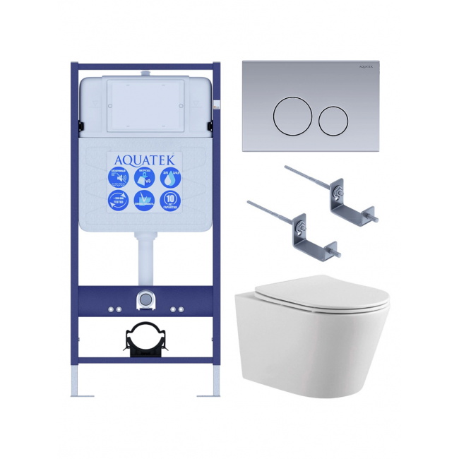 Комплект унитаз с инсталляцией, кнопкой и сиденьем микролифт Aquatek Вега SET AQUATEK ВЕГА-1905-036 безободковый купить с доставкой. 100% Оригинал. Гарантия!
