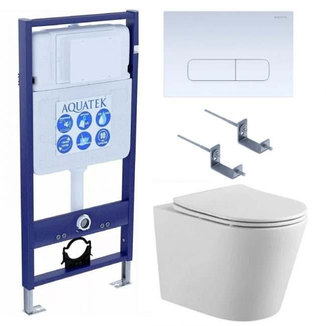 Комплект унитаз с инсталляцией, кнопкой и сиденьем микролифт Aquatek Вега SET AQUATEK ВЕГА cmp-013 безободковый купить с доставкой. 100% Оригинал. Гарантия!