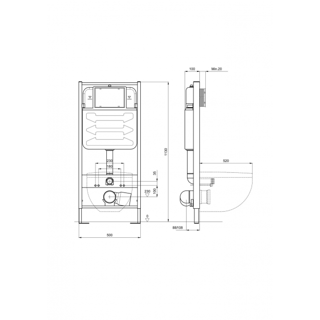 - Инсталляция совместима со смывными клавишами Geberit серии Sigma для механической системы смыва