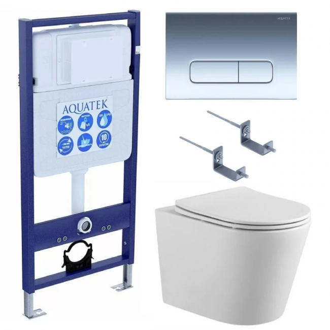 Комплект унитаз с инсталляцией, кнопкой и сиденьем микролифт Aquatek Вега SET AQUATEK ВЕГА cmp-016 безободковый купить с доставкой. 100% Оригинал. Гарантия!