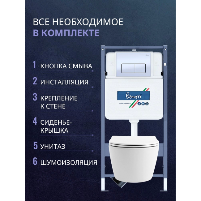 Комплект унитаз с инсталляцией, кнопкой и сиденьем микролифт Benneri B4.53.015A.AQ1106L купить с доставкой. 100% Оригинал. Гарантия!