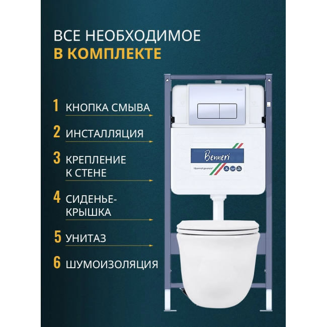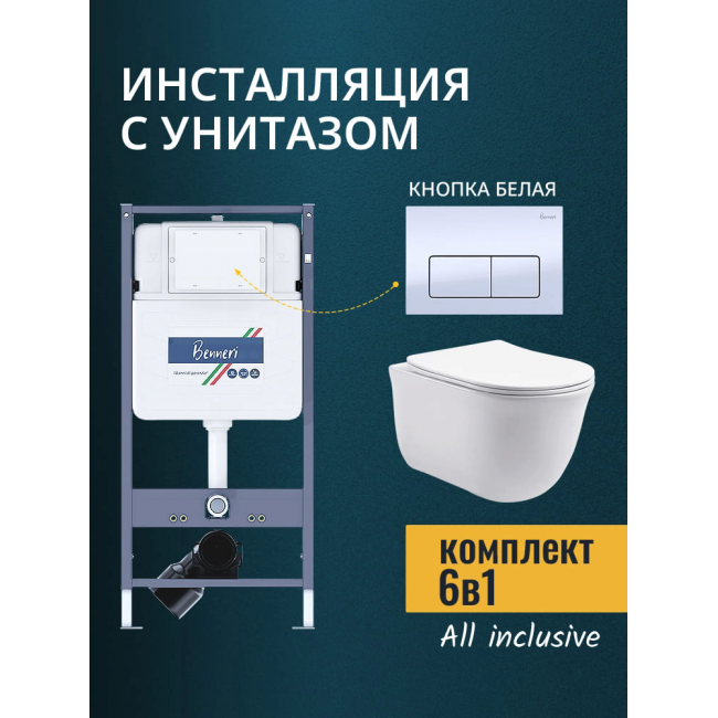 Комплект унитаз с инсталляцией, кнопкой и сиденьем микролифт Benneri B4.53.015A.AQ1111 купить с доставкой. 100% Оригинал. Гарантия!