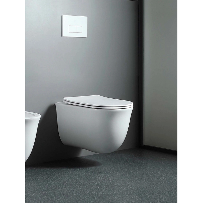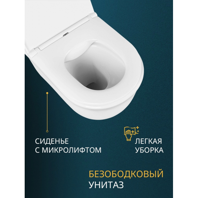 - Безободковая конструкция чаши унитаза имеет улучшенную гигиеничность – нет труднодоступных мест для уборки и скопления бактерий