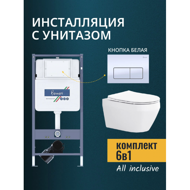 Комплект унитаз с инсталляцией, кнопкой и сиденьем микролифт Benneri B4.53.015A.AQ1199 купить с доставкой. 100% Оригинал. Гарантия!
