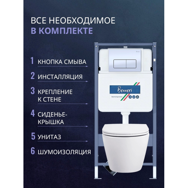 Комплект унитаз с инсталляцией, кнопкой и сиденьем микролифт Benneri B4.53.015A.AQ1900 купить с доставкой. 100% Оригинал. Гарантия!