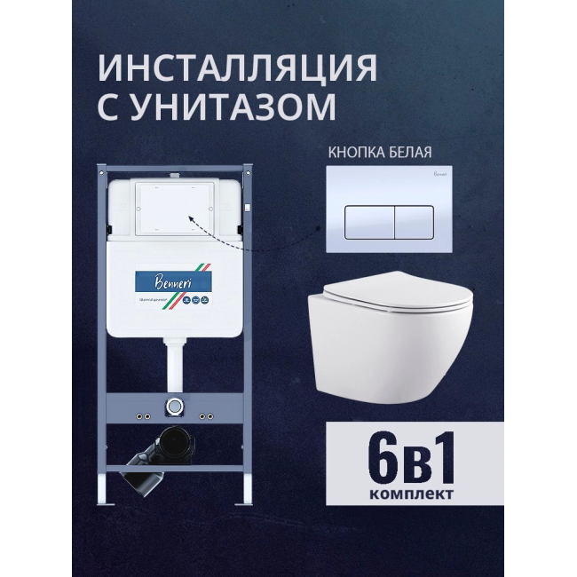 Комплект унитаз с инсталляцией, кнопкой и сиденьем микролифт Benneri B4.53.015A.AQ1901 купить с доставкой. 100% Оригинал. Гарантия!