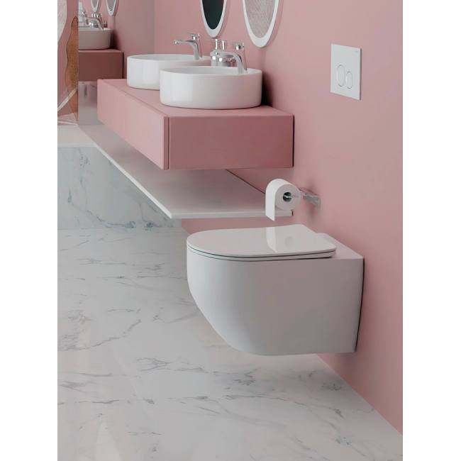 - Совместима со всеми видами подвесных унитазов, межосевое расстояние под крепежные шпильки унитаза 18 и 23 см