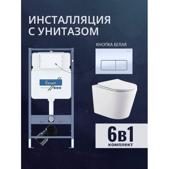 Комплект унитаз с инсталляцией, кнопкой и сиденьем микролифт Benneri B4.53.015A.AQ1904 купить с доставкой. 100% Оригинал. Гарантия!